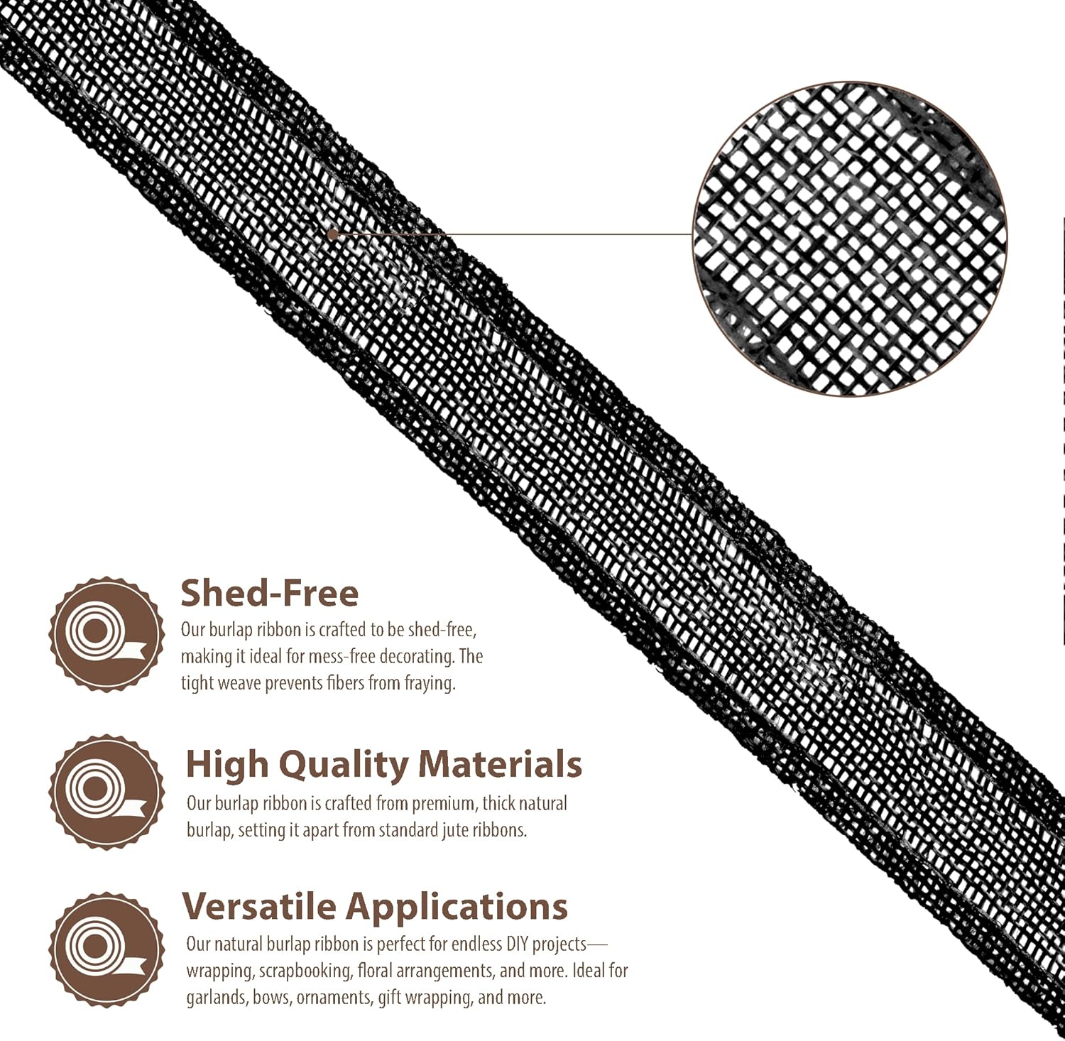 - Burlap Black Ribbons for Wrapping, DIY, Scrapbooking, & Floral Arrangement: The rustic ribbon is the ideal-colored burlap fabric for garlands, bows, flower, cards ornaments & curtains tiebacks and gift wrapping ribbon for boxes & baskets.