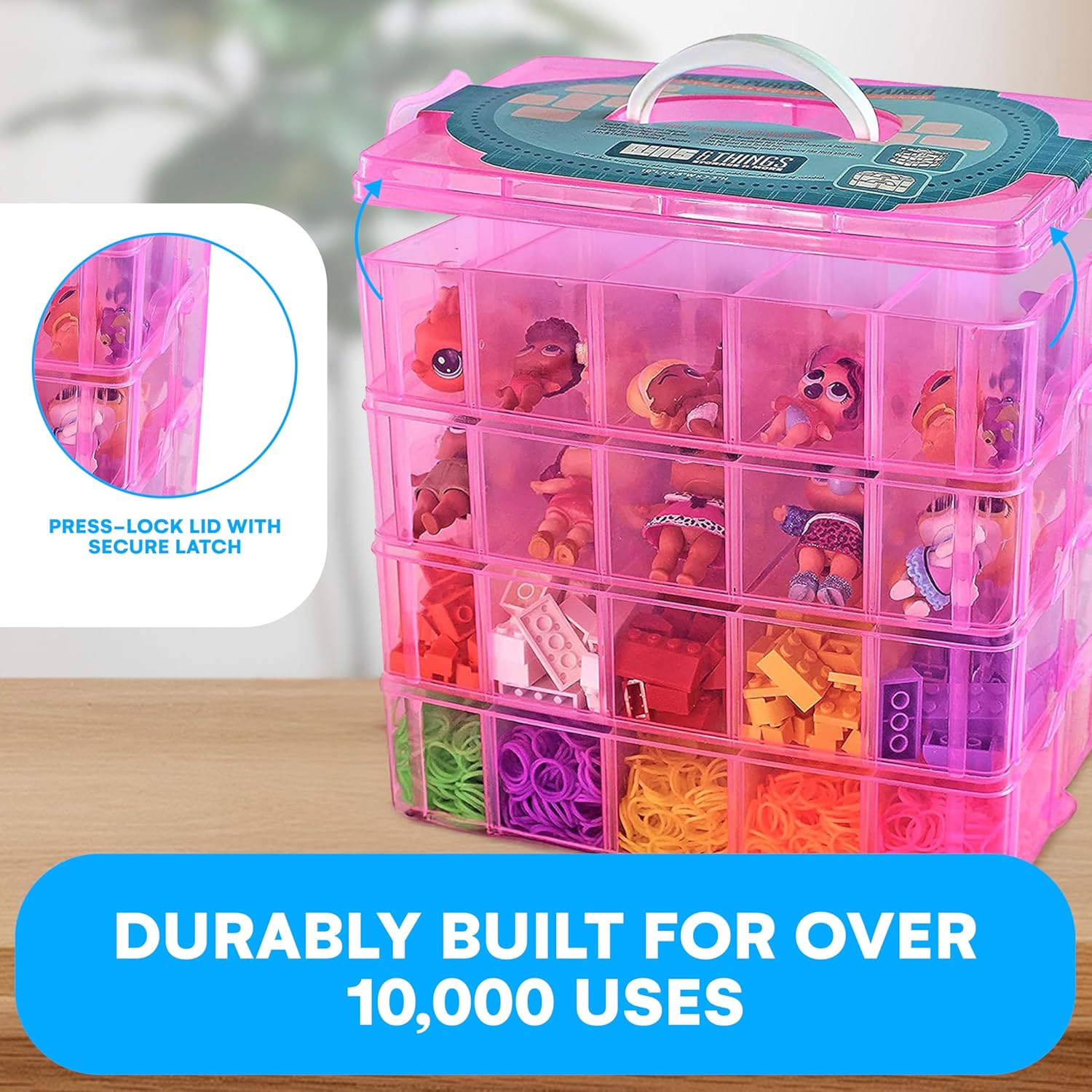Bins & Things Bead Organizer with Adjustable Compartments - Durable Toy Organizers and Storage Solution for Dolls, Crafts, Mini Toy Figures, Jewelry and Beads - 4 Tier, 40 Compartments, Pink