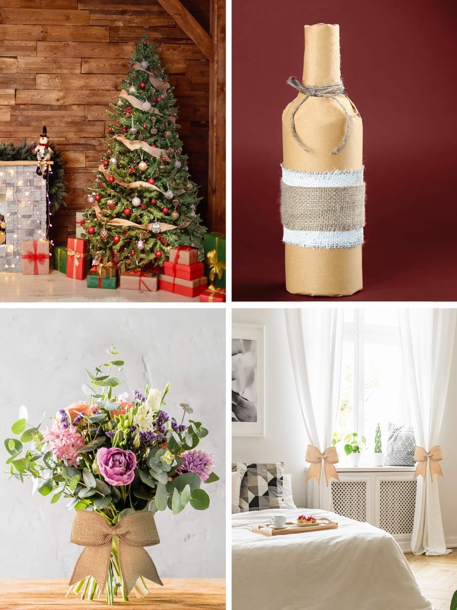 - Burlap Gray Wired Ribbons for Wrapping, DIY, Scrapbooking, & Floral Arrangement: The wired rustic ribbon is the ideal colored burlap fabric for garlands, bows, flowers, cards ornaments & curtain tiebacks and gift wrapping ribbon for boxes & baskets.