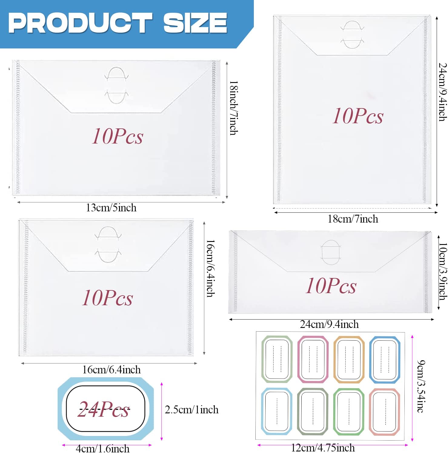 - ✨[STAMP AND DIE STORAGE BAG FOUR SIZES SET ] -- BAOFALI 40pieces stamp and die storage pockets with 48 label stickers ,10Pcs Large Bag sizes 9.4x7inch/24x18cm ,10Pcs medium Bag sizes 5x17inch/13x18cm 10Pcs medium Bag sizes 6.4x6.4inch/16x16cm 10Pcs small Bag sizes 3.9x9.4inch/10x24cm10 pieces in each size. There is always a size storage bag that fits your stamp or die enough quantity to meet your needs for daily supplies,Conveniently organize and collect your handmade supplies