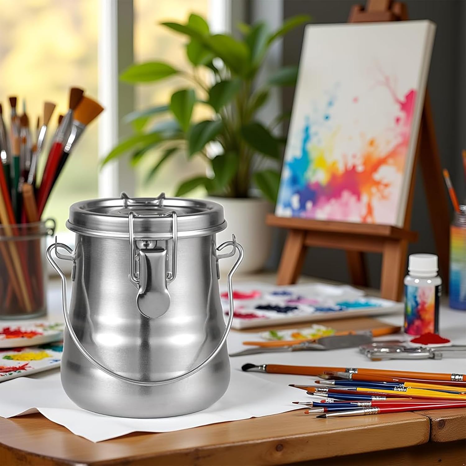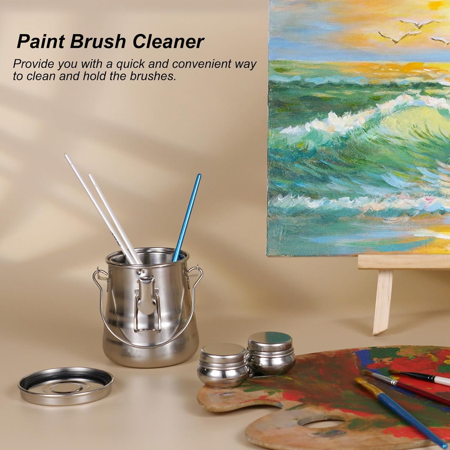 Paint Brush Cleaner and Holder, Stainless Steel Airtight Brush Washer with Removable Porous Filter for Painting (13.5 oz/400 ml)