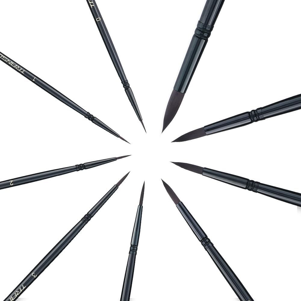 Transon Round Paint Brush Set 9pcs Synthetic Sable Hair for Acrylic Painting Watercolor Painting Gouache Ink Craft and Detail Painting Black Color