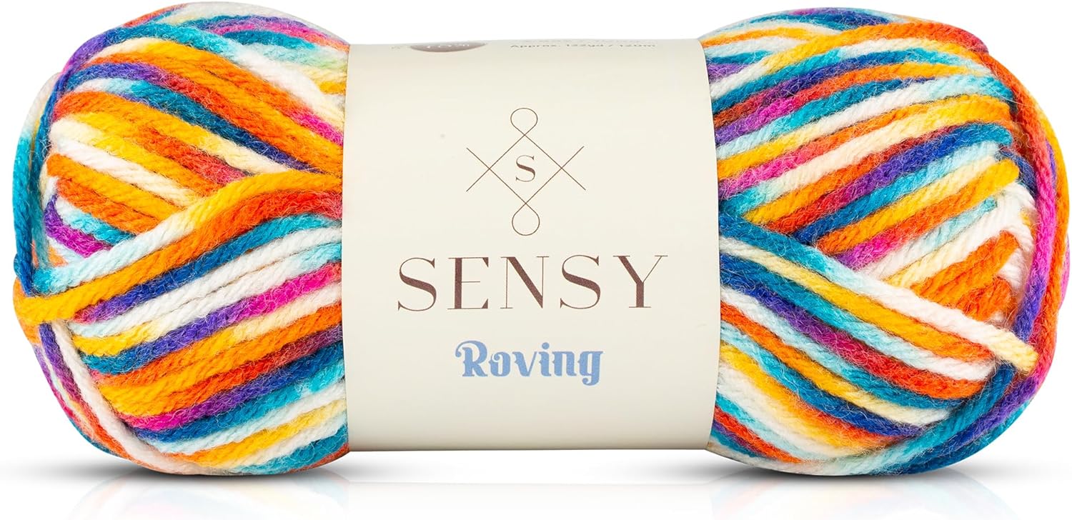 Sensy Roving Multi Color Yarn, 3.5 oz, 132 Yards, Gauge 5 Bulky (Carnaval)