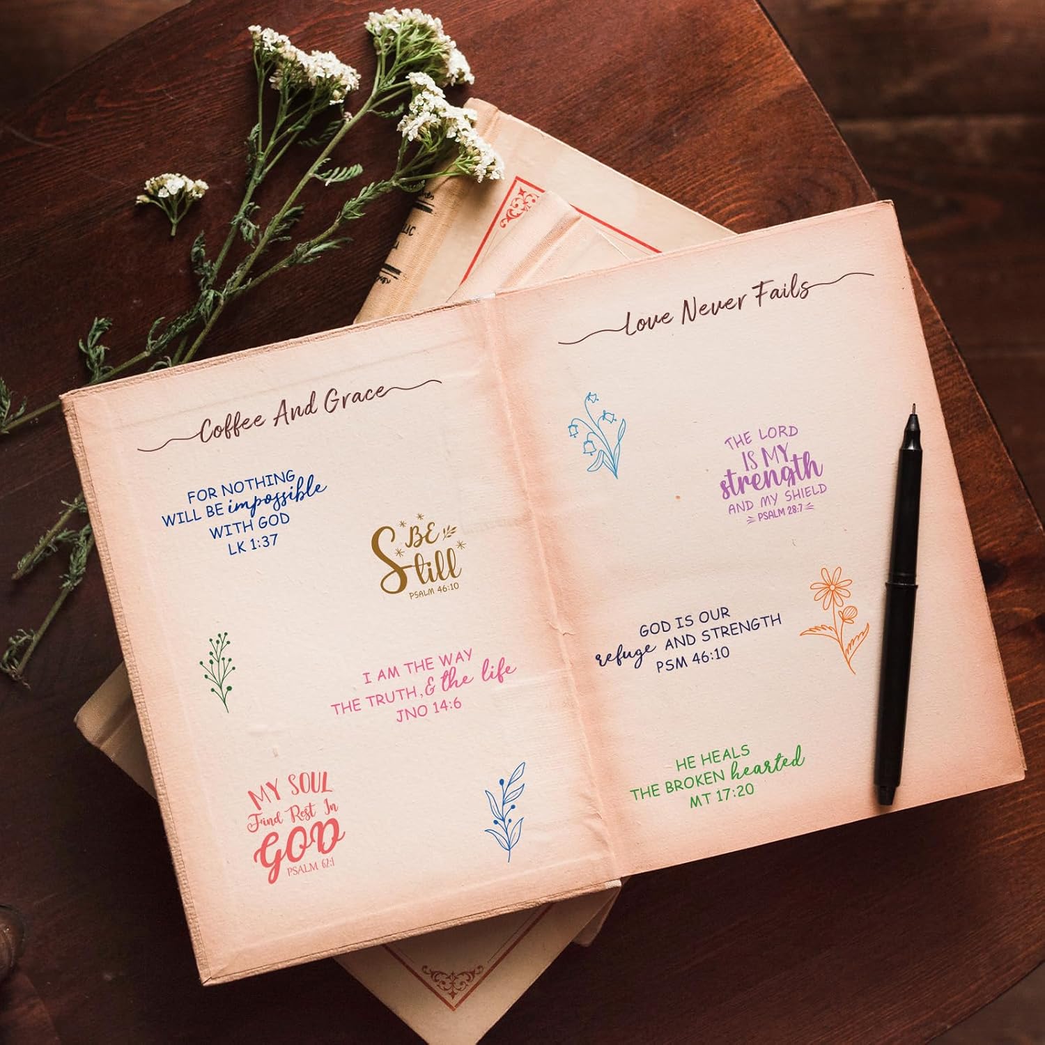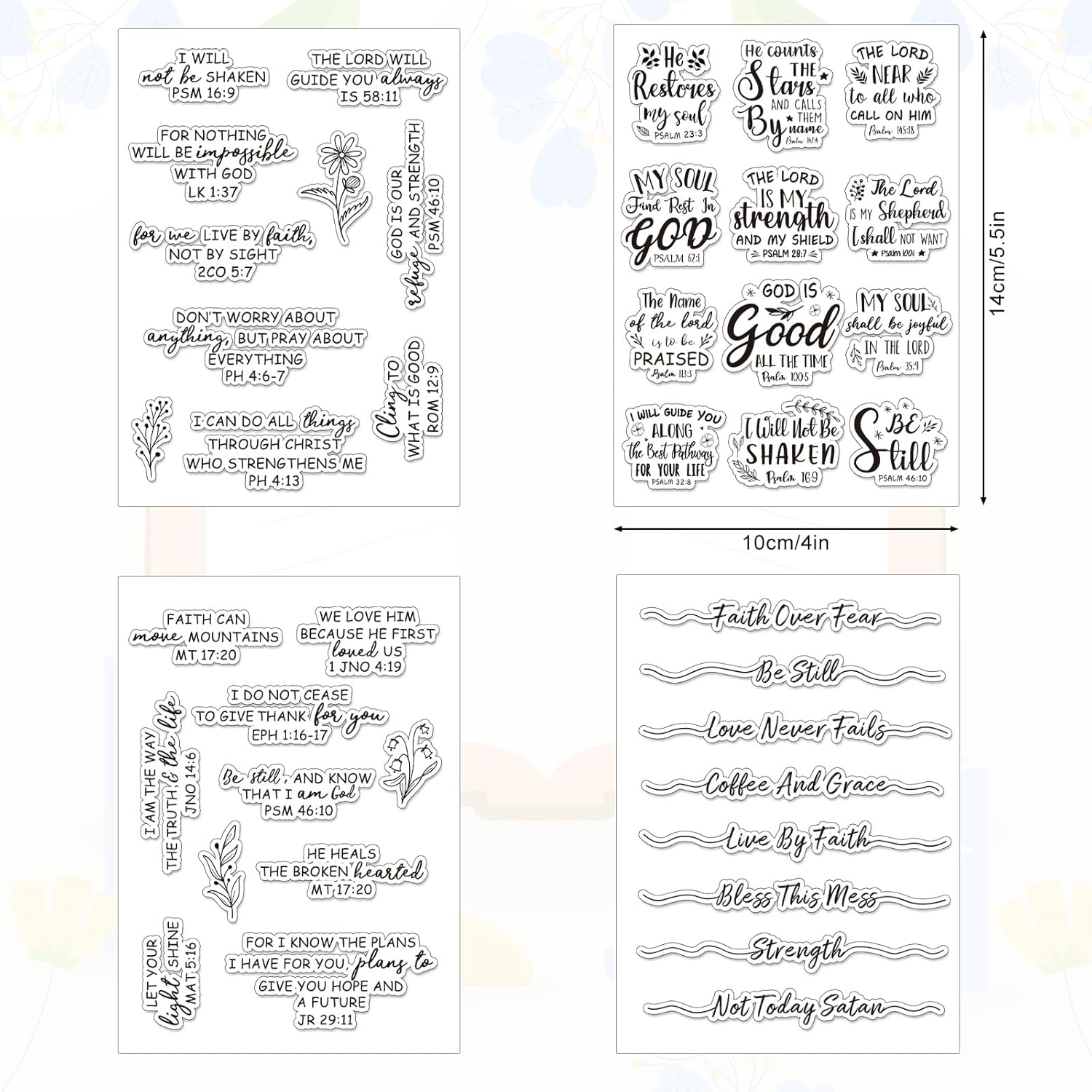 - Delicate Design- These clear stamps are designed with classic bible theme words and patterns, such as the words of Be Still, Faith Over Fear, etc., delicate and attractive, will be great decoration to match with various cards.