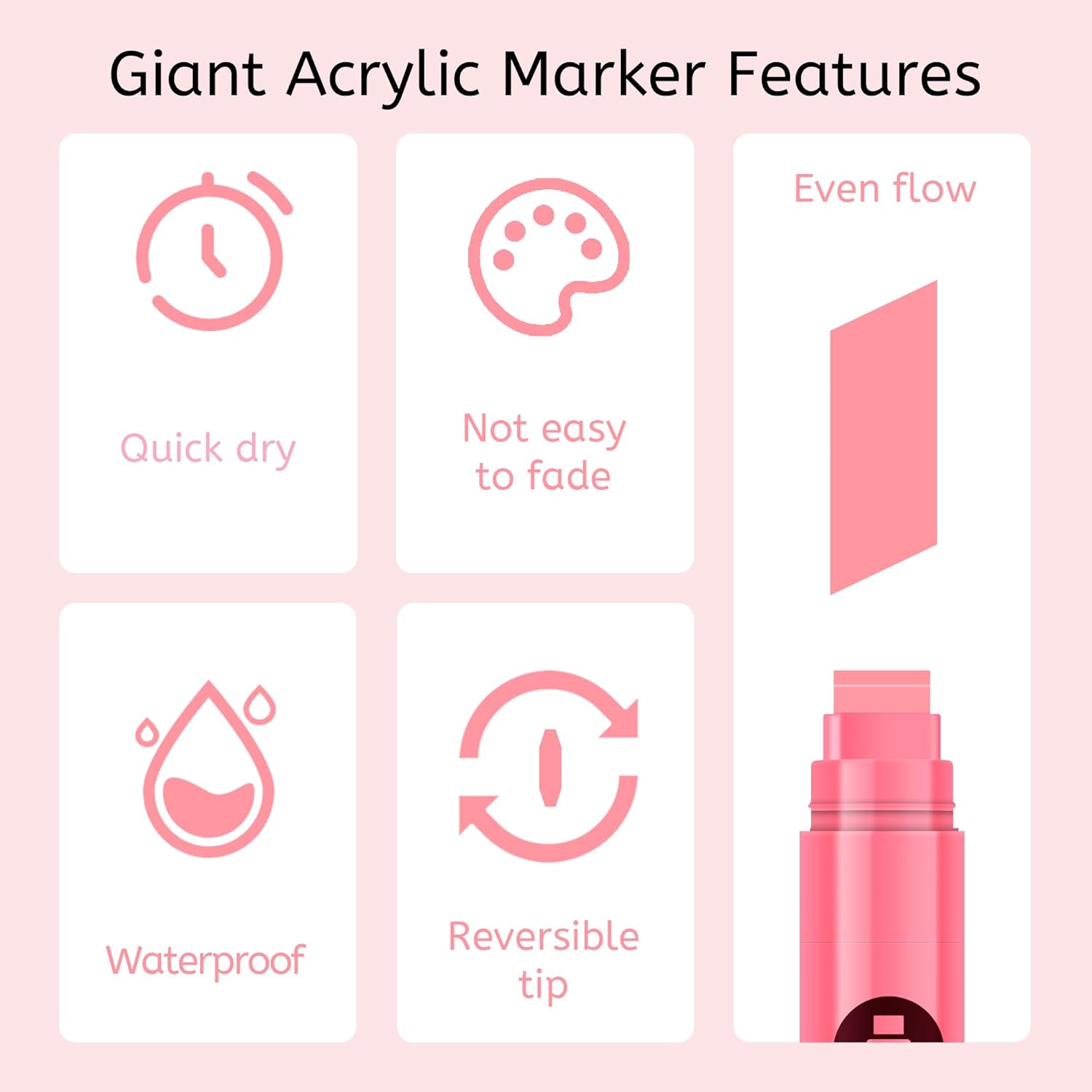 - Acrylic Graffiti Markers: BIGTHUMB Jumbo Poster Markers is made with the highest-quality non-toxic, acid-free,no odor, no-leakage water-based acrylic ink that is waterproof, quick dry, long-lasting, and has a smooth ink flow. Each permanent painting marker conforms to ASTM d-4236 and EN-71 safety standards.