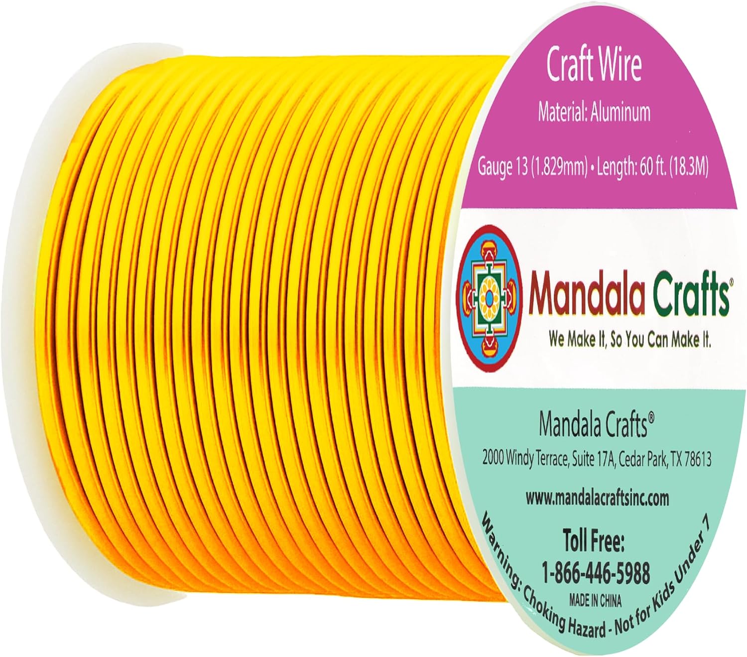 Mandala Crafts 13 Gauge Anodized Aluminum Craft Wire for Jewelry Making - 60 FT Colored Flexible Gold Tone Wire - Bendable for Bonsai Armature Crafting Sculpting