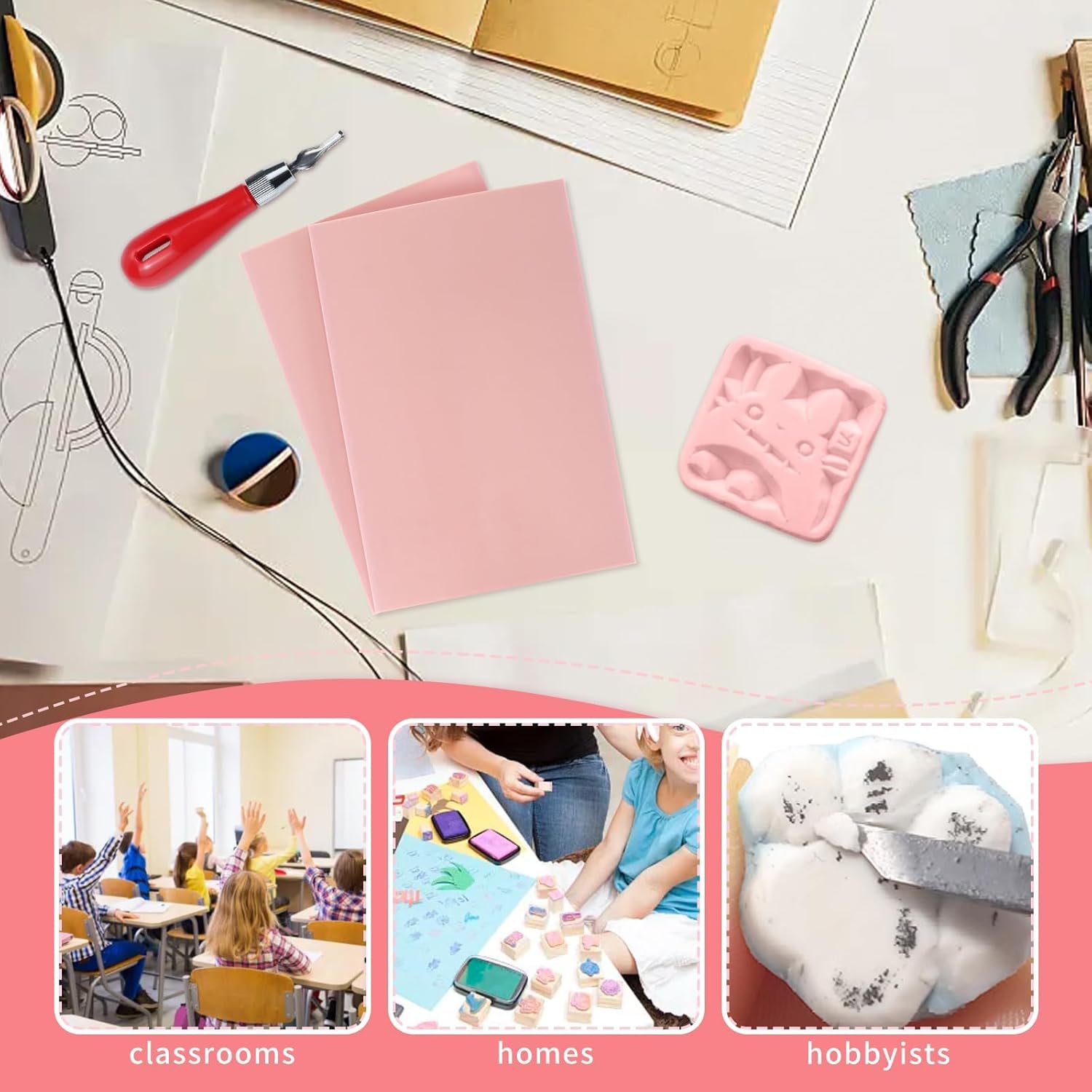 4 Pack 4"x6" Pale Pink Rubber Stamp Carving Blocks, Rubber Carved Brick for Stamp Soft Rubber Crafts and DIY Craft Project