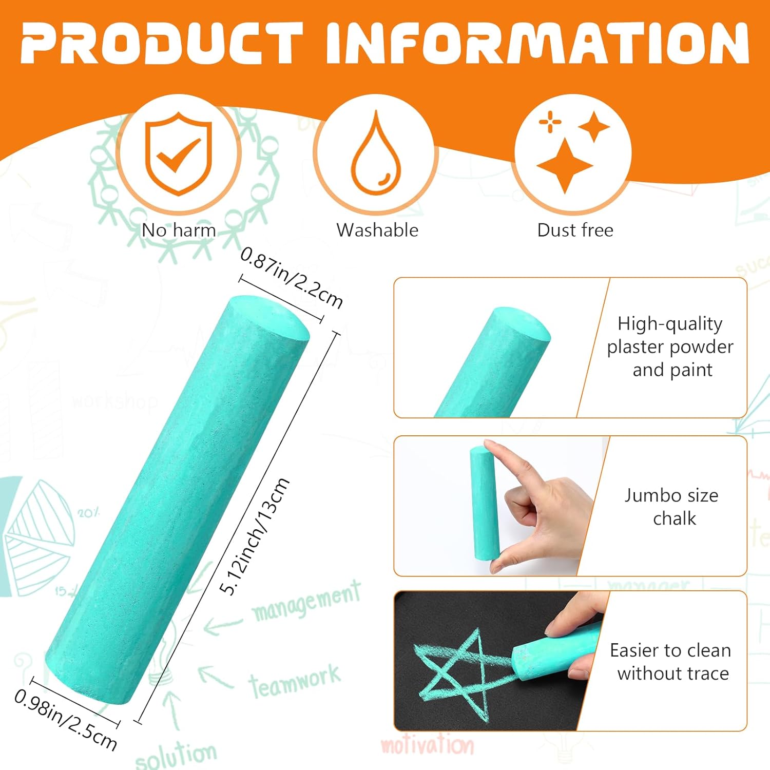- High Quality: our large chalk is made from high-quality, non-toxic materials, ensuring safe use for of all ages, the thick design is easy to grip and perfect for little hands, encouraging creativity and motor skills, and please remember to wash your hands after use
